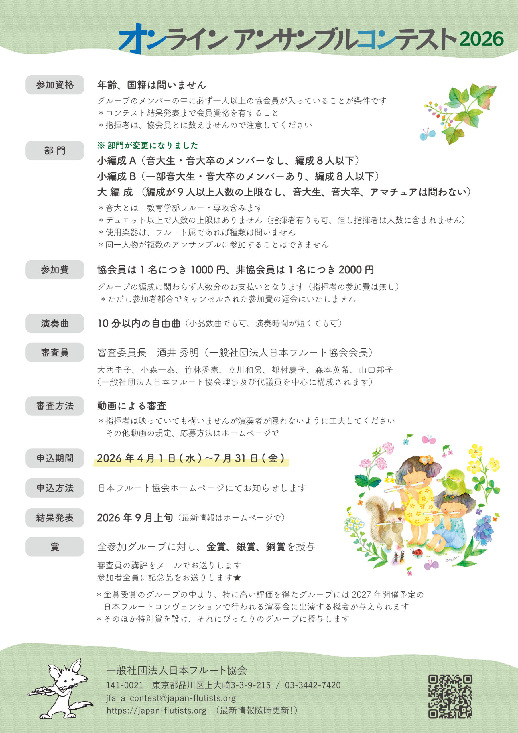 - 本コンテストに参加される方が新たに日本フルート協会正会員にご入会いただく場合、入会金が特別価格になります