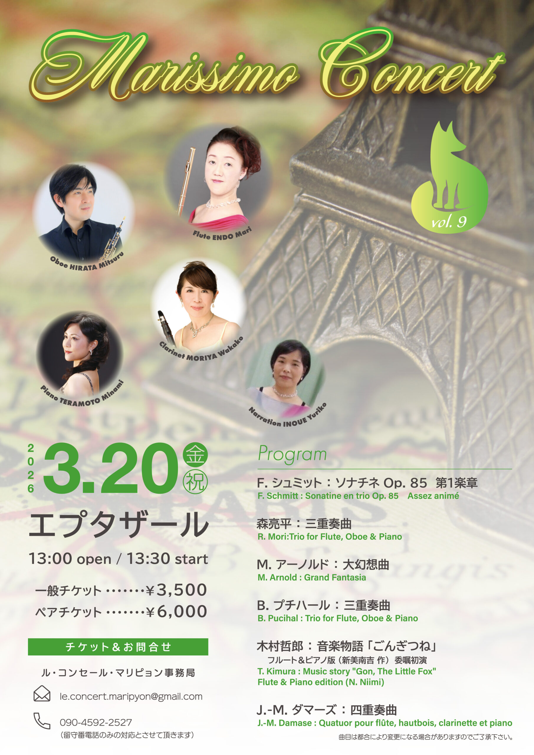 ダマーズ/四重奏曲お問合せ le.concert.maripyon@gmail.com(遠藤) -